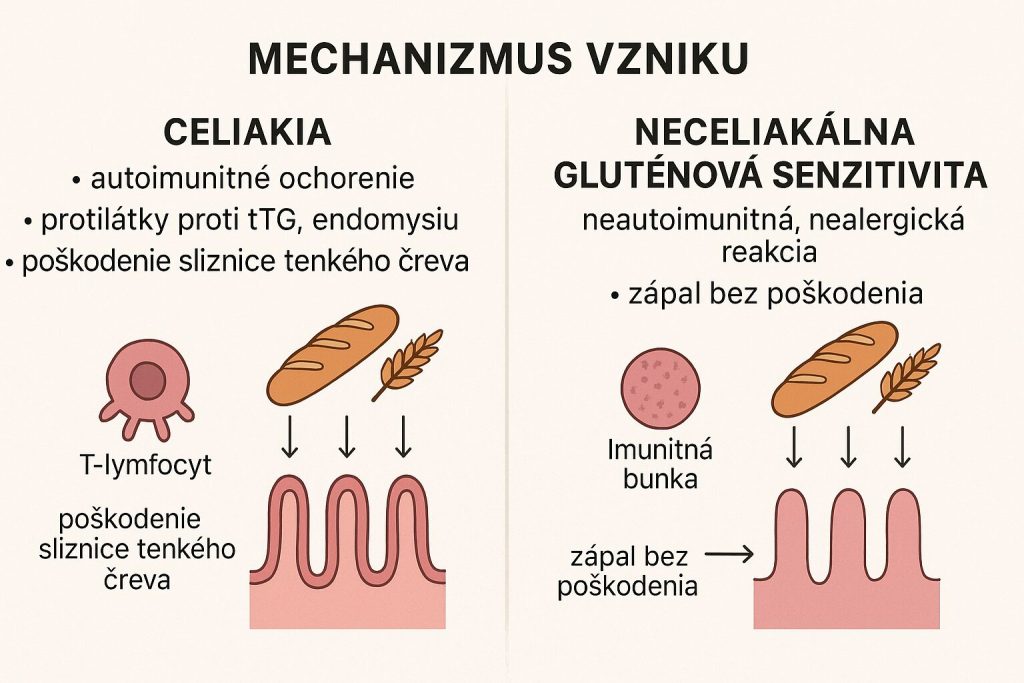 V nasledujúcich častiach sa podrobne pozrieme na hlavné rozdiely medzi celiakiou a intoleranciou na lepok – od mechanizmu vzniku, cez poškodenie črevnej sliznice a diagnostiku, až po dlhodobé následky a možnosti liečby.