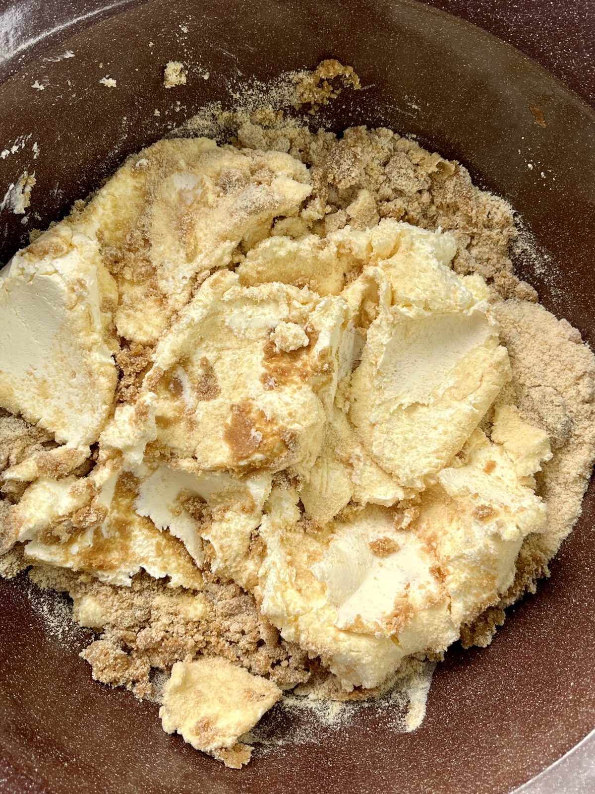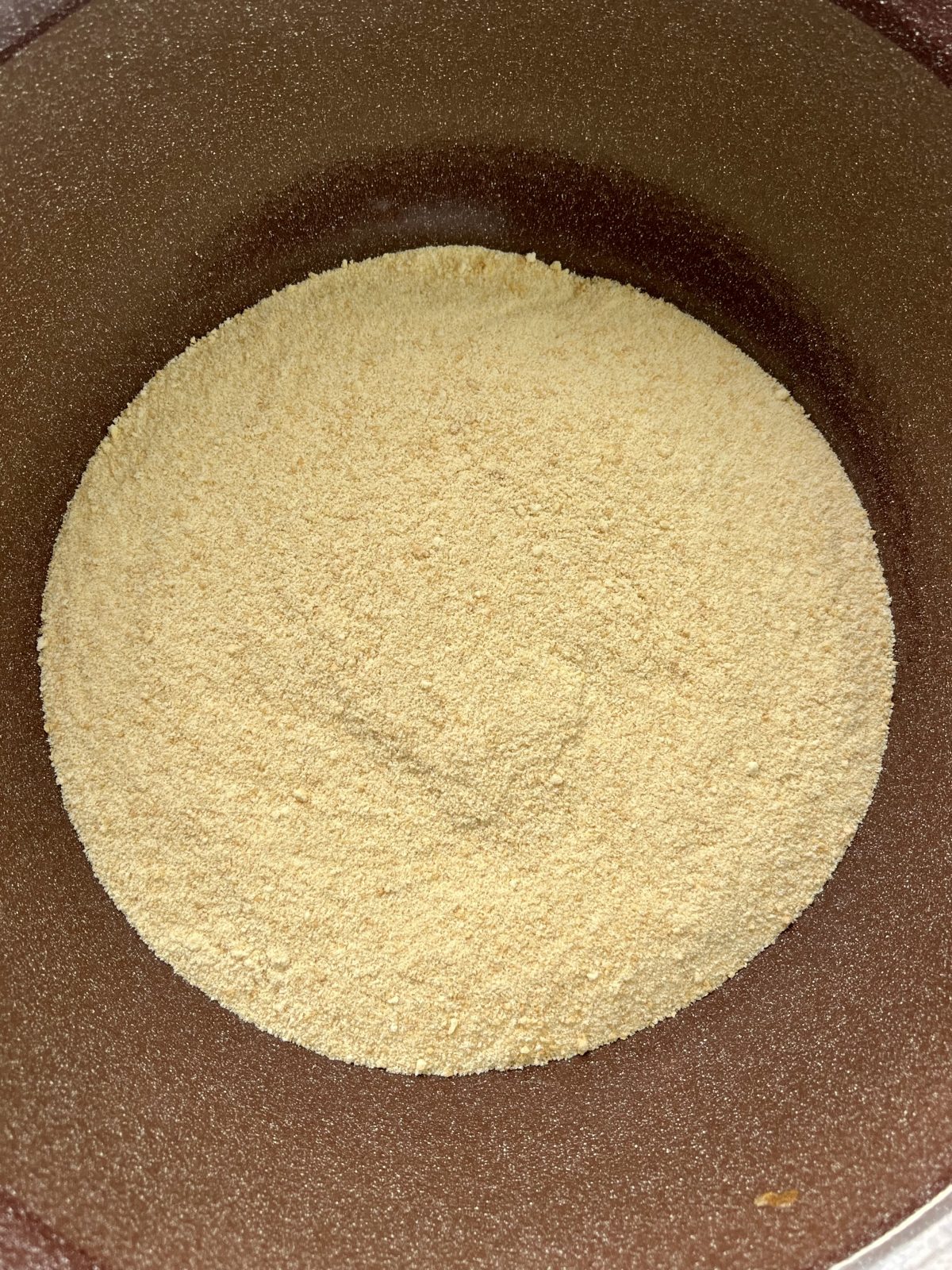 - Do misky si rozdrv piškóty a prisyp k nim práškový cukor.